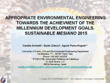 <Notice: Removed> APPROPRIATE ENVIRONMENTAL ENGINEERING TOWARDS THE ACHIEVMENT OF THE MILLENNIUM DEVELOPMENT GOALS. SUSTAINABLE MESIANO 2015 PowerPoint PPT Presentation