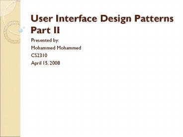 <Notice: Removed> User%20Interface%20Design%20Patterns%20Part%20II PowerPoint PPT Presentation