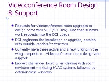 • Requests for videoconference room upgrades or