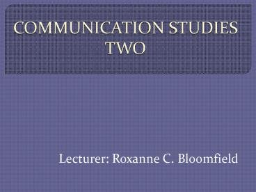 <Notice: Removed> COMMUNICATION STUDIES TWO PowerPoint PPT Presentation
