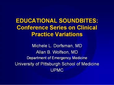 <Notice: Removed> EDUCATIONAL SOUNDBITES: Conference Series on Clinical Practice Variations PowerPoint PPT Presentation