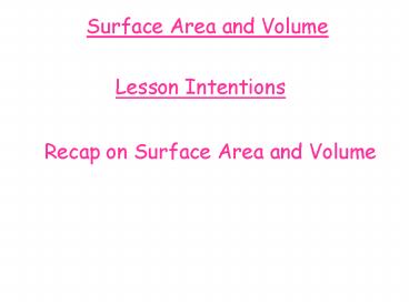 Title: Surface Area and Volume