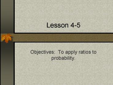 Objectives: To apply ratios to probability. PowerPoint PPT Presentation