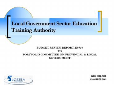 - 7. LGSETA FINANCES AND INFORMATION TECHNOLOGY