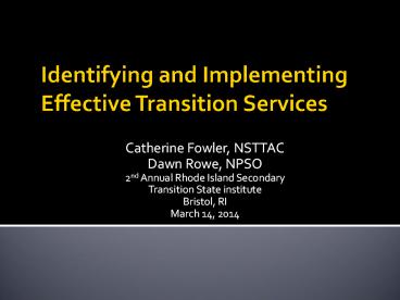 <Notice: Removed> Identifying and Implementing Effective Transition Services PowerPoint PPT Presentation
