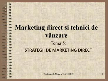 Title: Marketing direct si tehnici de v