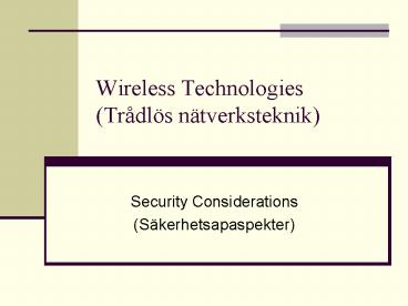 Wireless Technologies (Tr PowerPoint PPT Presentation
