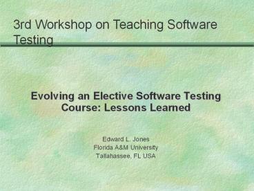 <Notice: Removed> Evolving an Elective Software Testing Course: Lessons Learned PowerPoint PPT Presentation