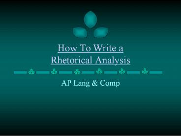 How To Write a Rhetorical Analysis PowerPoint PPT Presentation