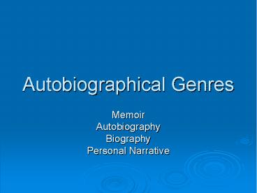 <Notice: Removed> Autobiographical Genres PowerPoint PPT Presentation