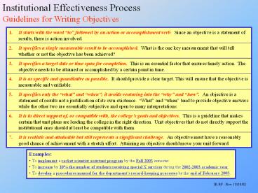 Institutional Effectiveness Process PowerPoint PPT Presentation