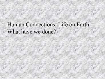 1Human Connections Life on Earth What have we
