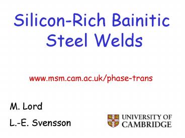 Silicon-Rich Bainitic Steel Welds