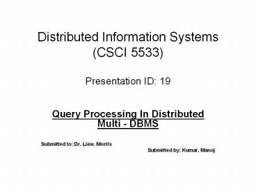 Distributed Information Systems (CSCI 5533) Presentation ID: 19 PowerPoint PPT Presentation