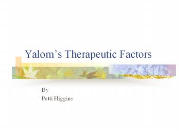 • Yalom (1995) defined therapeutic factors as "the