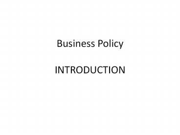 <Notice: Removed> Business Policy INTRODUCTION PowerPoint PPT Presentation