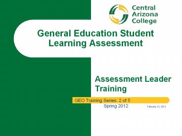 <Notice: Removed> Assessment Leader Training PowerPoint PPT Presentation