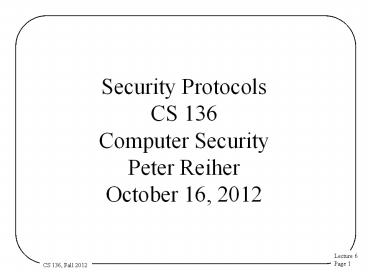 <Notice: Removed> Security Protocols CS 136 Computer Security Peter Reiher October 16, 2012 PowerPoint PPT Presentation