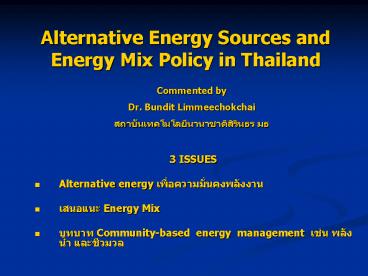 <Notice: Removed> Alternative Energy Sources and Energy Mix Policy in Thailand PowerPoint PPT Presentation