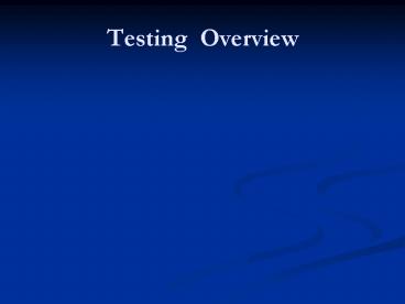 <Notice: Removed> Testing Overview PowerPoint PPT Presentation