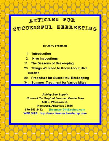 ARTICLES FOR SUCCESSFUL BEEKEEPING