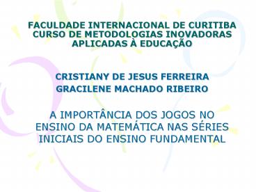 <Notice: Removed> FACULDADE INTERNACIONAL DE CURITIBA CURSO DE METODOLOGIAS INOVADORAS APLICADAS PowerPoint PPT Presentation