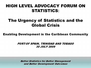 Title: HIGH LEVEL ADVOCACY FORUM ON STATISTICS: