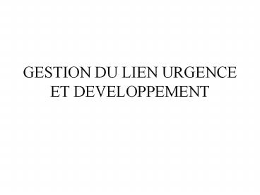 Title: GESTION DU LIEN URGENCE ET DEVELOPPEMENT