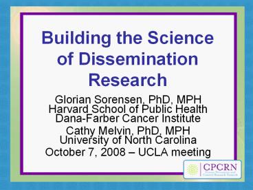 <Notice: Removed> Building the Science of Dissemination Research PowerPoint PPT Presentation