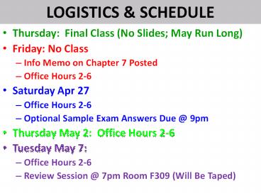 - Thursday Final Class (No Slides May Run Long)