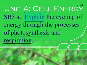 Unit 4: Cell Energy PowerPoint PPT Presentation