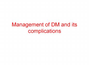 Management of DM and its complications PowerPoint PPT Presentation