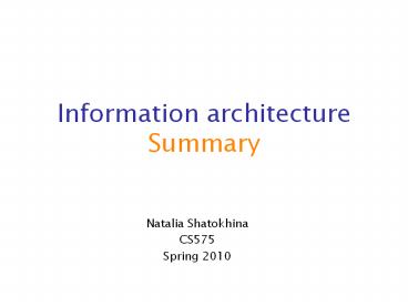 <Notice: Removed> Information architecture Summary PowerPoint PPT Presentation