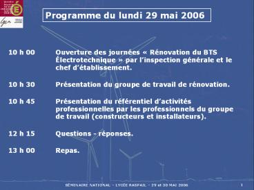 Électrotechnique. - 17 h 30 Présentation des matériels par les