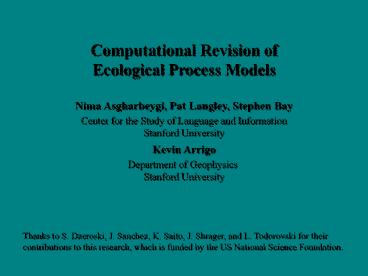 Nima Asgharbeygi, Pat Langley, Stephen Bay Center
