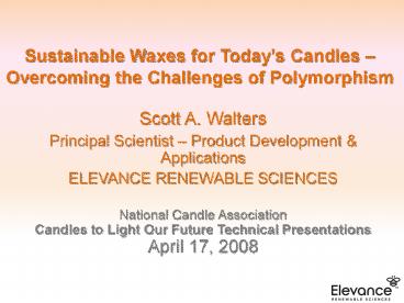 <Notice: Removed> Sustainable Waxes for Today PowerPoint PPT Presentation