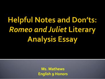 <Notice: Removed> Helpful Notes and Don PowerPoint PPT Presentation
