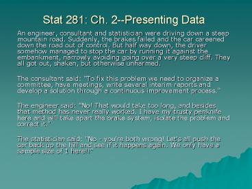 in the data. - Stem Leaf and Dot Plots begin to give us a