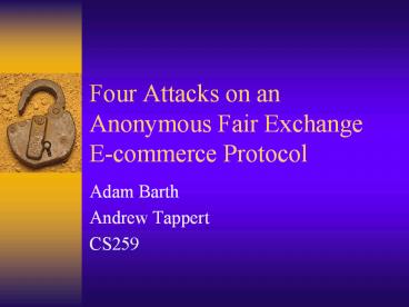 Four Attacks on an Anonymous Fair Exchange E-commerce Protocol PowerPoint PPT Presentation