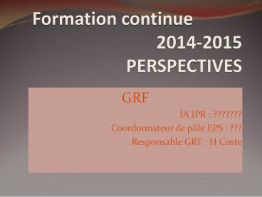 <Notice: Removed> Formation continue 2014-2015 PERSPECTIVES PowerPoint PPT Presentation