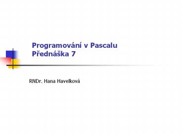 Programování v Pascalu Prednáška 7