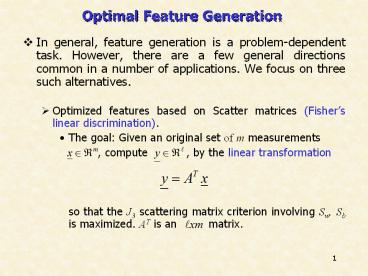 <Notice: Removed> Optimal Feature Generation PowerPoint PPT Presentation