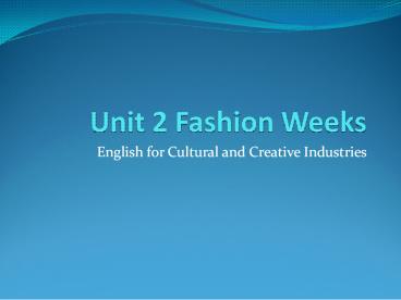 <Notice: Removed> Unit 2 Fashion Weeks PowerPoint PPT Presentation