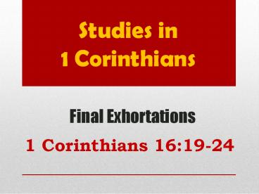 Studies in 1 Corinthians PowerPoint PPT Presentation
