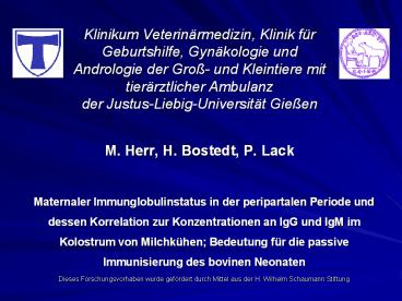 Immunisierung des bovinen Neonaten - Dieses Forschungsvorhaben wurde gefördert durch