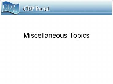 <Notice: Removed> Miscellaneous Topics PowerPoint PPT Presentation