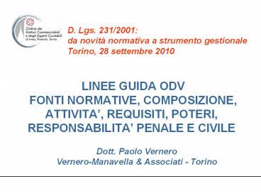 Title: LINEE GUIDA ODV FONTI NORMATIVE, COMPOSIZIONE, ATTIVITA