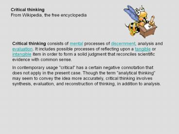 <Notice: Removed> Critical thinking PowerPoint PPT Presentation