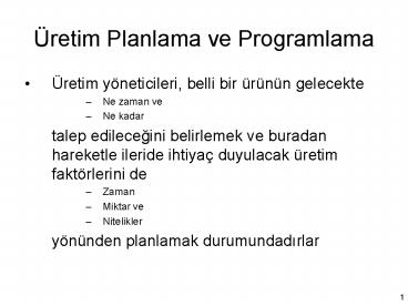 tüketici taleplerini karsilamaktir. - Üretim plani, isletme plani ile uyumlu olmali ve