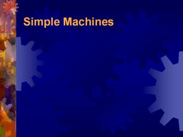 Inclined plane 2. Wedge 3. Screw Wheel and axle 5. Pulley 6. Lever